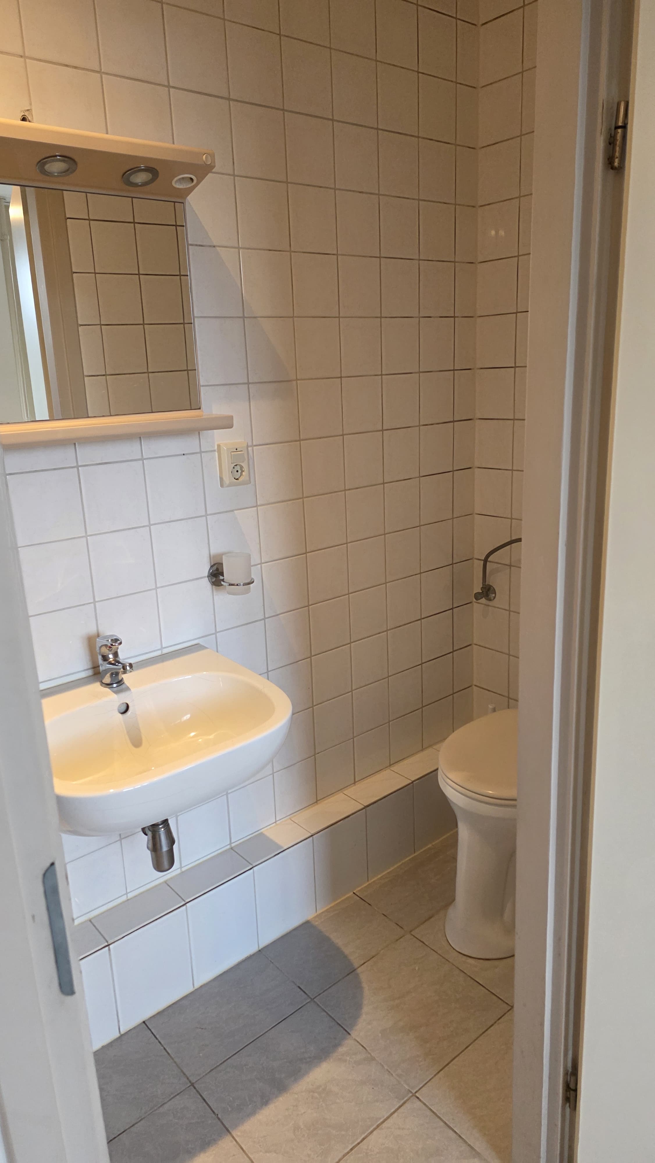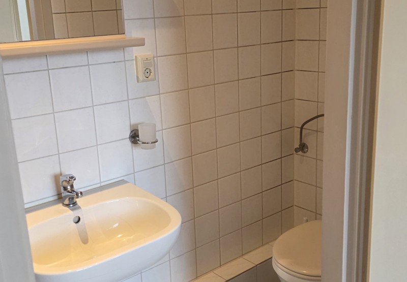 - Badkamer voorzien van douche, toilet en vaste wastafel