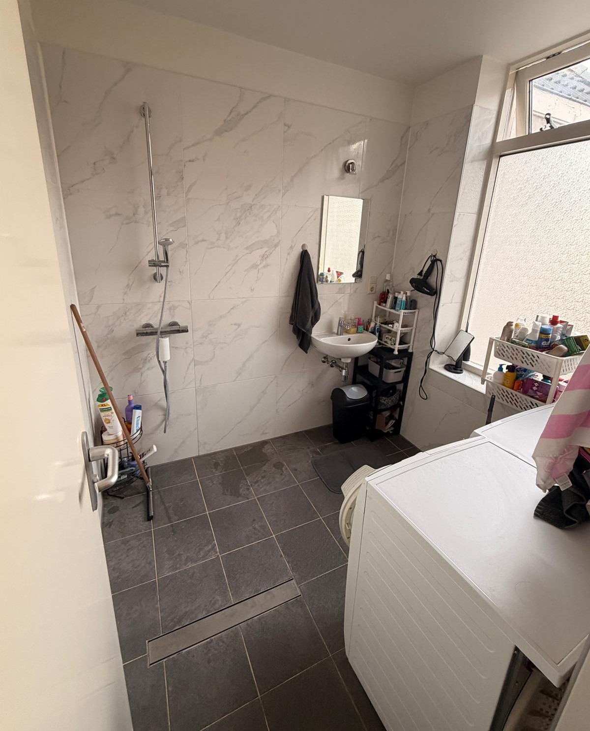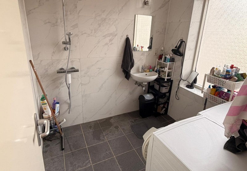 - Badkamer met douche en wasbak