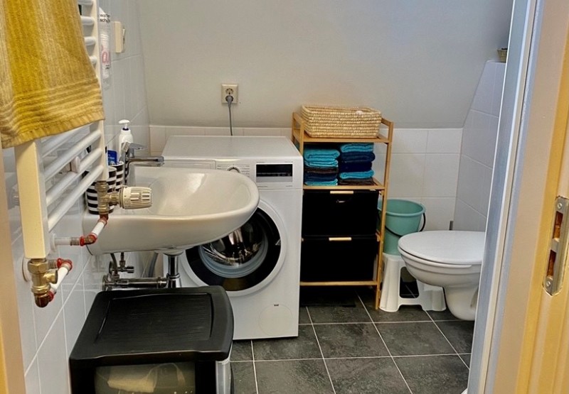 - Badkamer met douche en sanitair