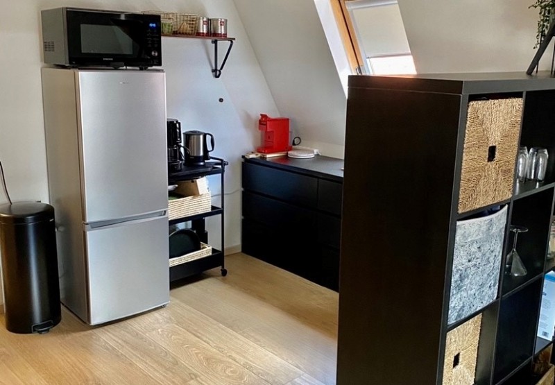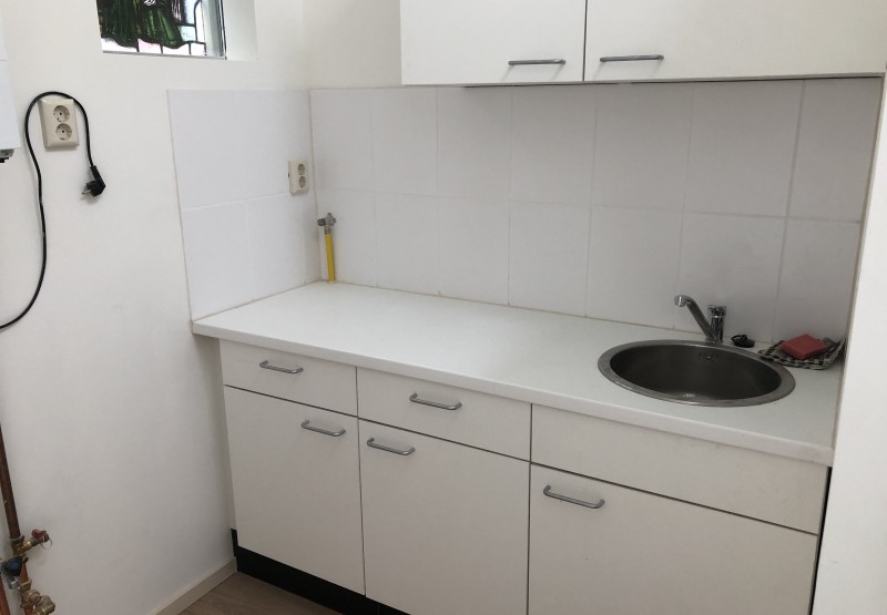 - Keuken, gelegen op de 1e verdieping, wordt gedeeld met de winkel en 2 andere appartementen