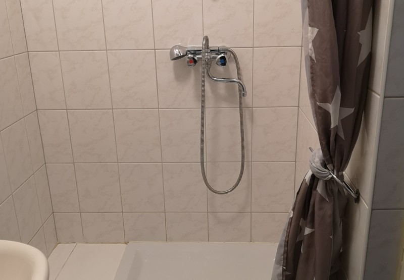 - Badkamer met douche, wastafel